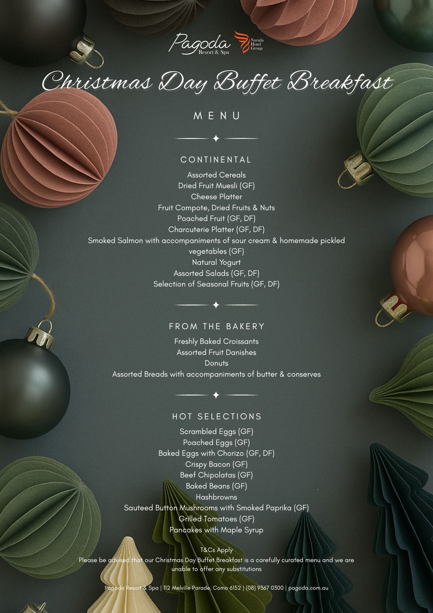Have a wonderful Christmas Day Buffet Breakfast or Lunch at Pagoda!