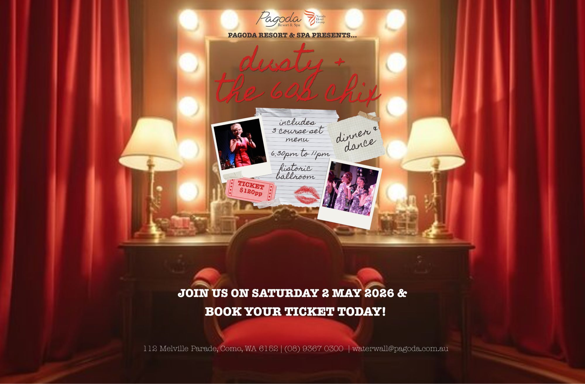 Step back in time for a night of sequins, soul and seriously good music at Dusty & The 60s Chix Dinner & Dance, hosted at Pagoda Resort & Spa.
