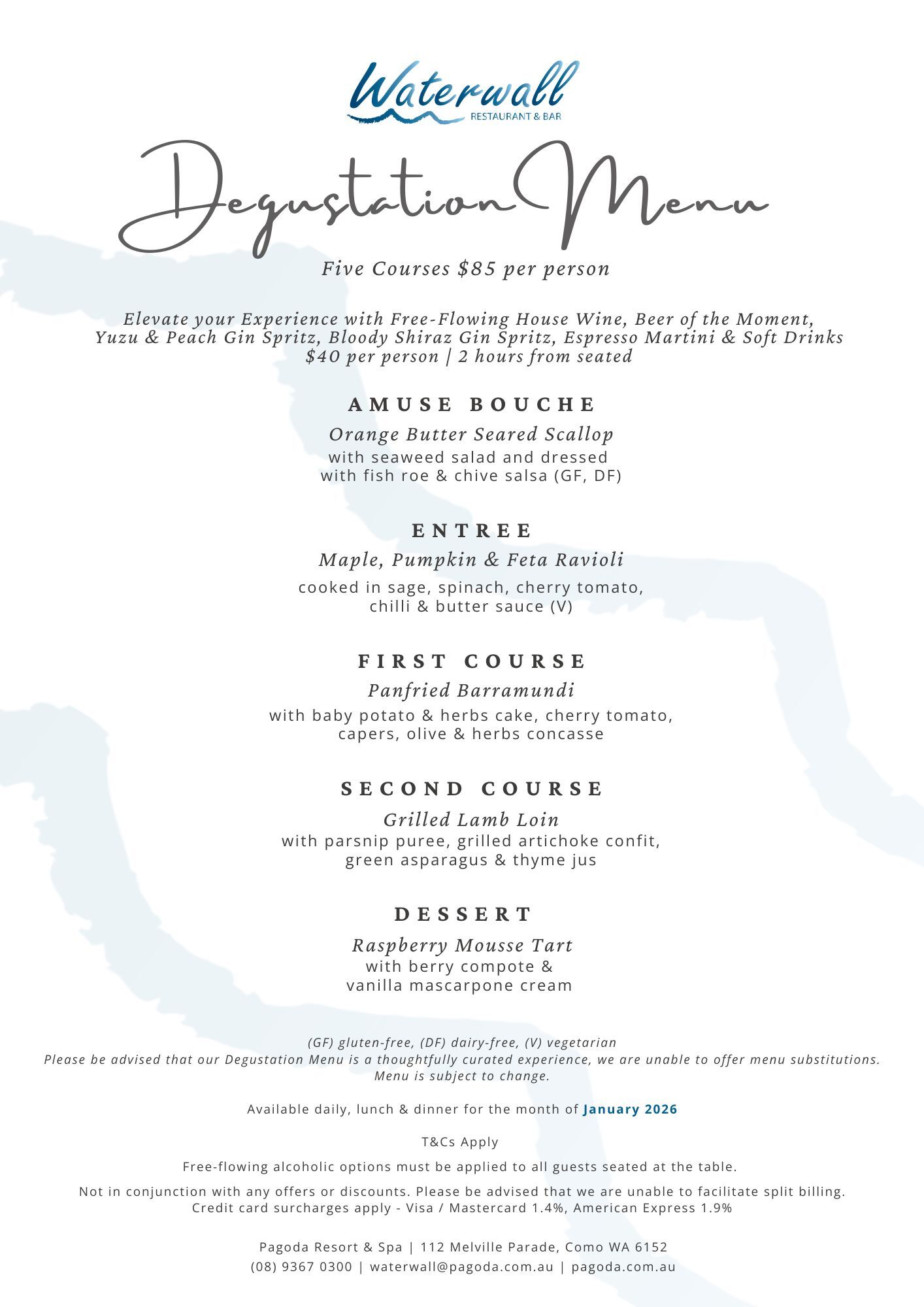 - Available for Waterwall Restaurant & Bar dining only