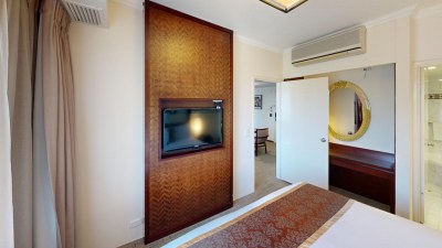Pagoda Suites offer 44sqm of elegant luxury with private lounge with Smart LED TV with Foxtel/Cable TV and satellite channels, mini-bar stocked with some free items, complimentary Wi-Fi access, Nespresso Coffee Maker with capsules, small dining table and chairs, lounge suite, work desk, tea and coffee making facilities, air-conditioning/heating, iron with ironing board, hair dryer, amenities, telephone, radio with alarm clock. The separate bedroom features a king bed, LCD TV and most with en-suite bathroom with spa bath.