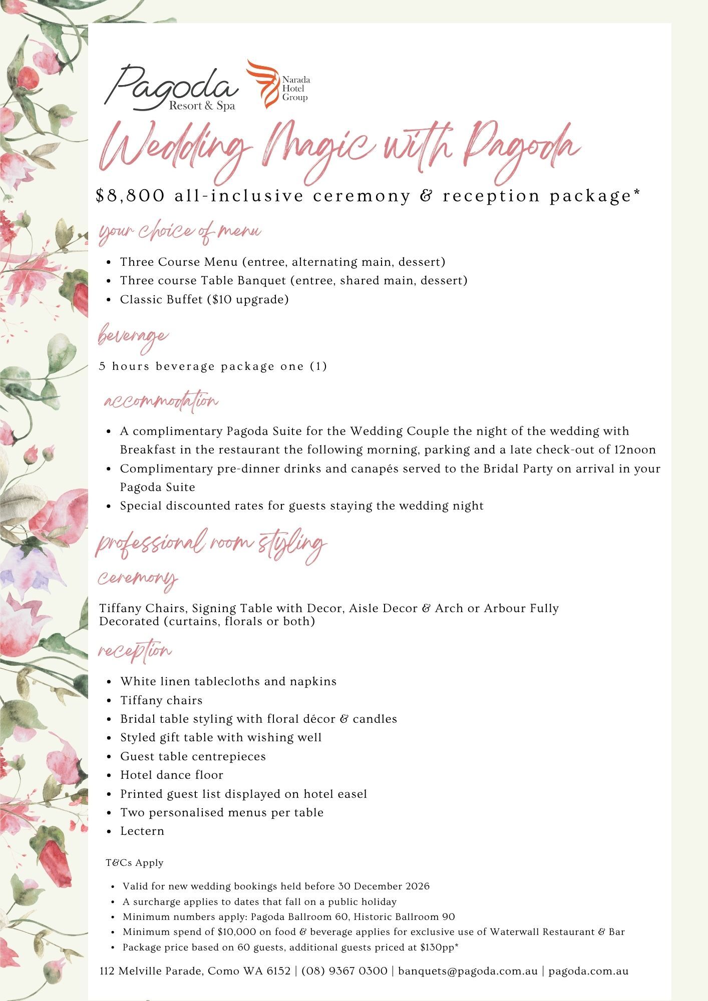Introducing Pagoda Resort & Spa's newest all inclusive ceremony & reception package in collaboration with Wedding Magic Perth.